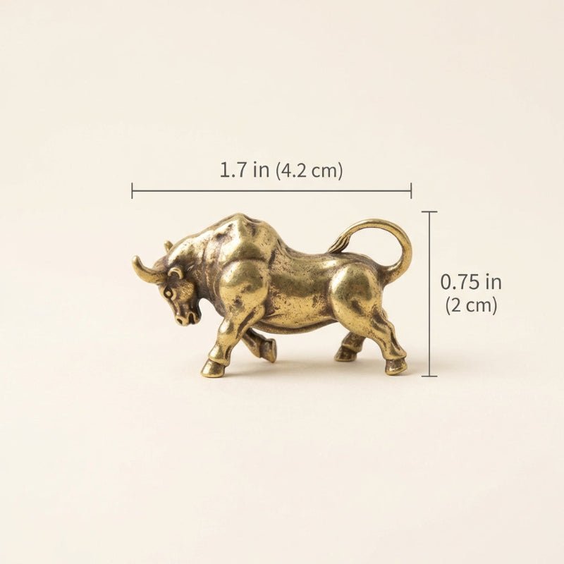 A solid brass bull figurine symbolizing strength and prosperity. Perfect for shelves, desks, and modern home décor. A timeless accent piece by Kiyo Home.
