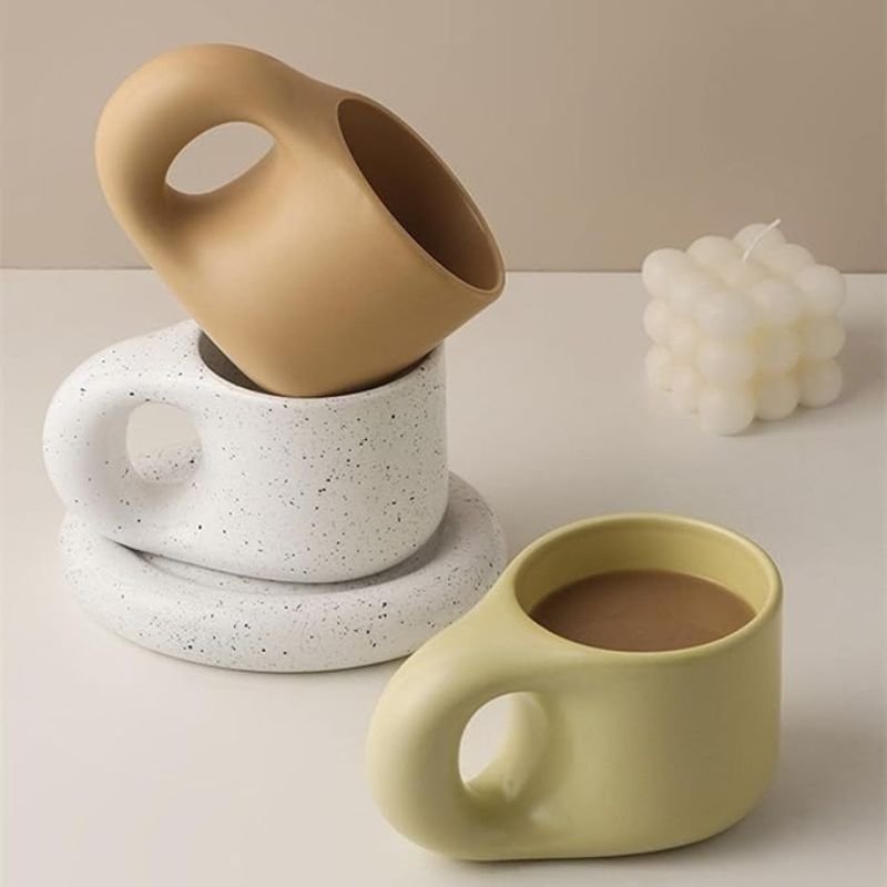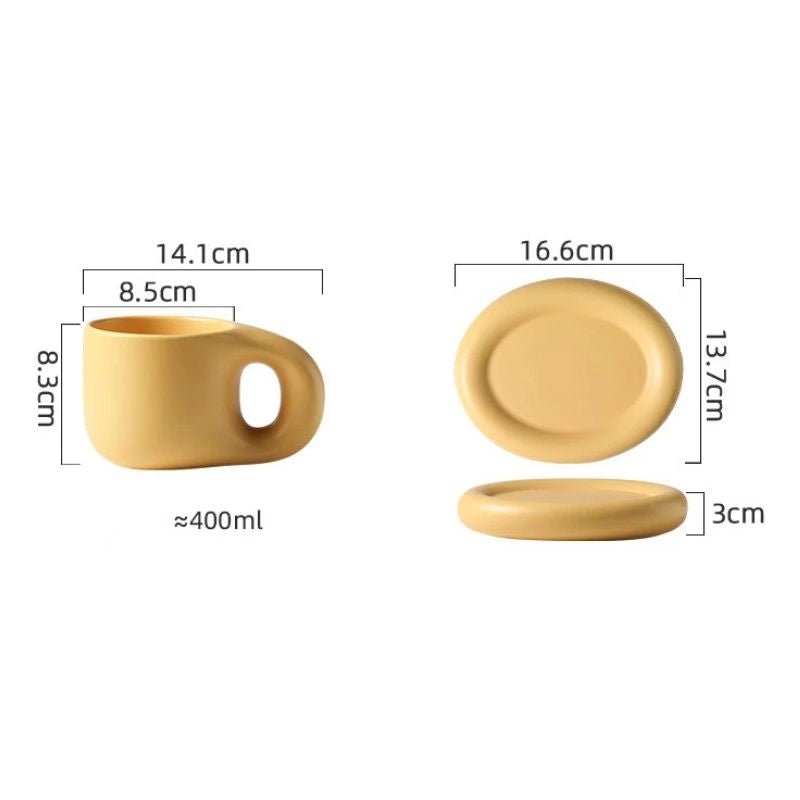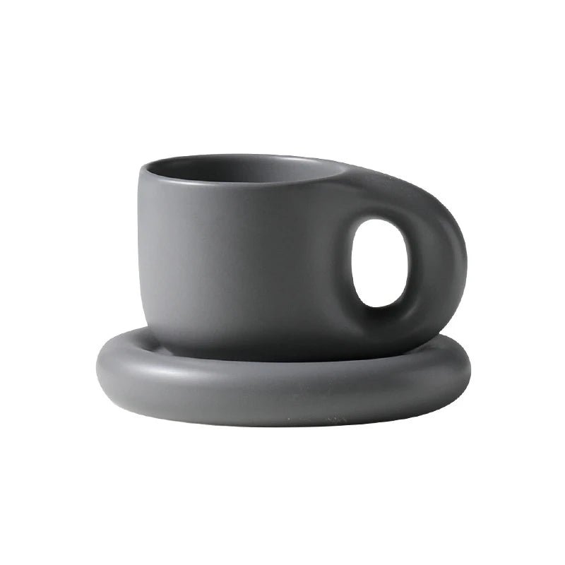 Savor every sip with this minimalist mug, designed for both style and comfort. Its smooth ceramic and chubby shape offer a cozy hold, while the matching saucer adds a refined touch.