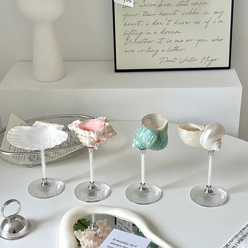 Coastal shell-shaped glasses with 70–1000 ml capacity. Perfect for cocktails, wine, or juice. Elegant beach-inspired drinkware for home or gifting.