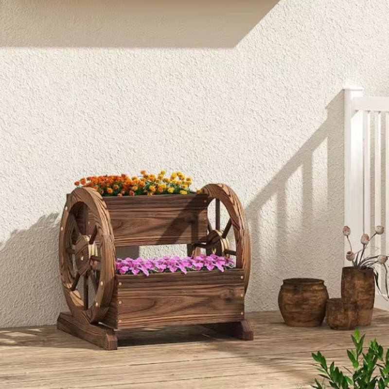 Rustic charm meets practical garden design in this vintage-style Wagon Planter Box.